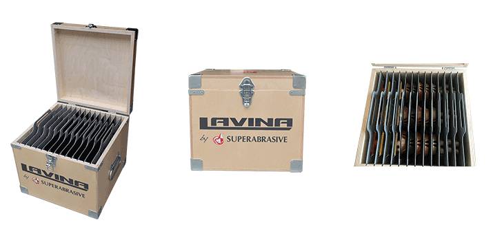 Cutia de unelte LAVINA este ideala pentru depozitarea uneltelor dvs. metalice si diamantate cu rasina. Poate cuprinde pana la 45 de bucati de scule metalice QuickChange sI 72 de bucati de sateliti cu rasina, de 3 inch.