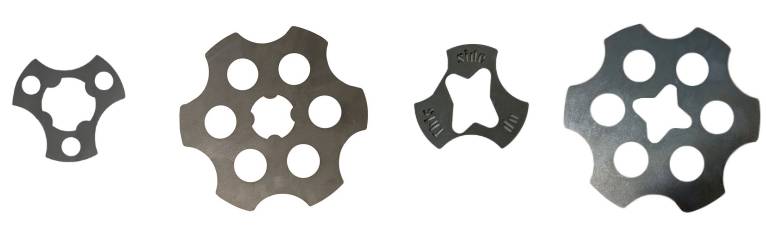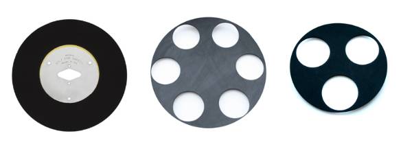 Recomandam utilizarea de placi de fixare a uneltelor pentru fixare in pozitie a tuturor dispozitivelor de tip Quick Change. Toate masinile Lavina sunt dotate cu aceste placi, insa daca aveti nevoie de piese suplimentare, le puteti comanda oricand de la distribuitorul Lavina. Va rugam sa retineti ca noile modele Elite folosesc placi de stiluri diferite fata de cele pentru modelele X (din cauza designului blocare diferit) si exista doua dimensiuni de placi de fixare a uneltelor pentru capetele de 9 inch si capetele de 13,2 inch. Mai jos, de la stanga la dreapta, sunt ilustrate placi de fixare pentru capete Elite de 9 inch, capete Elite de 13,2 inch, capete X de 9 inch, capete X de 13,2 inch.